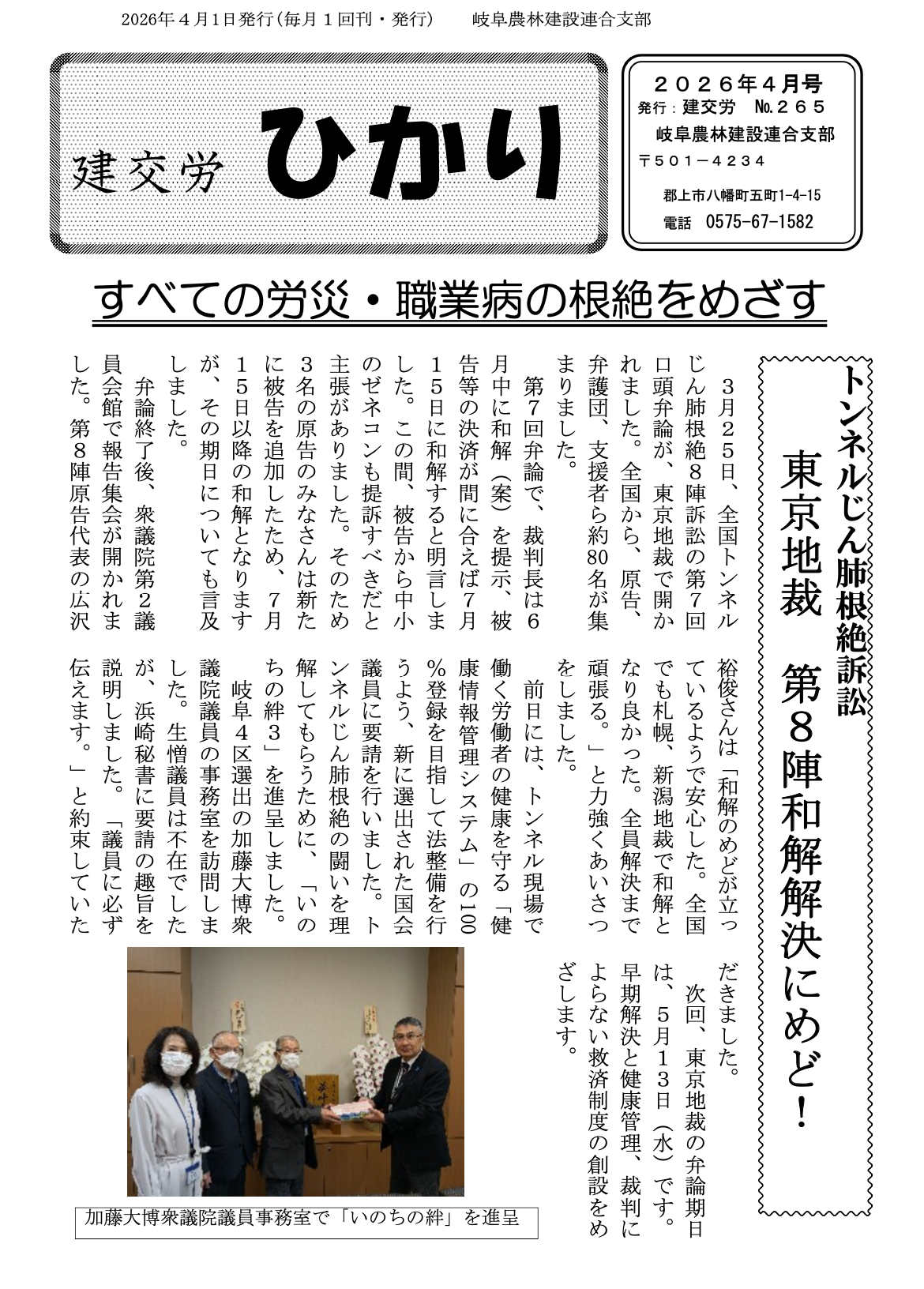 神岡鉱山のじん肺被害を早期に解決するために全力で闘います。
