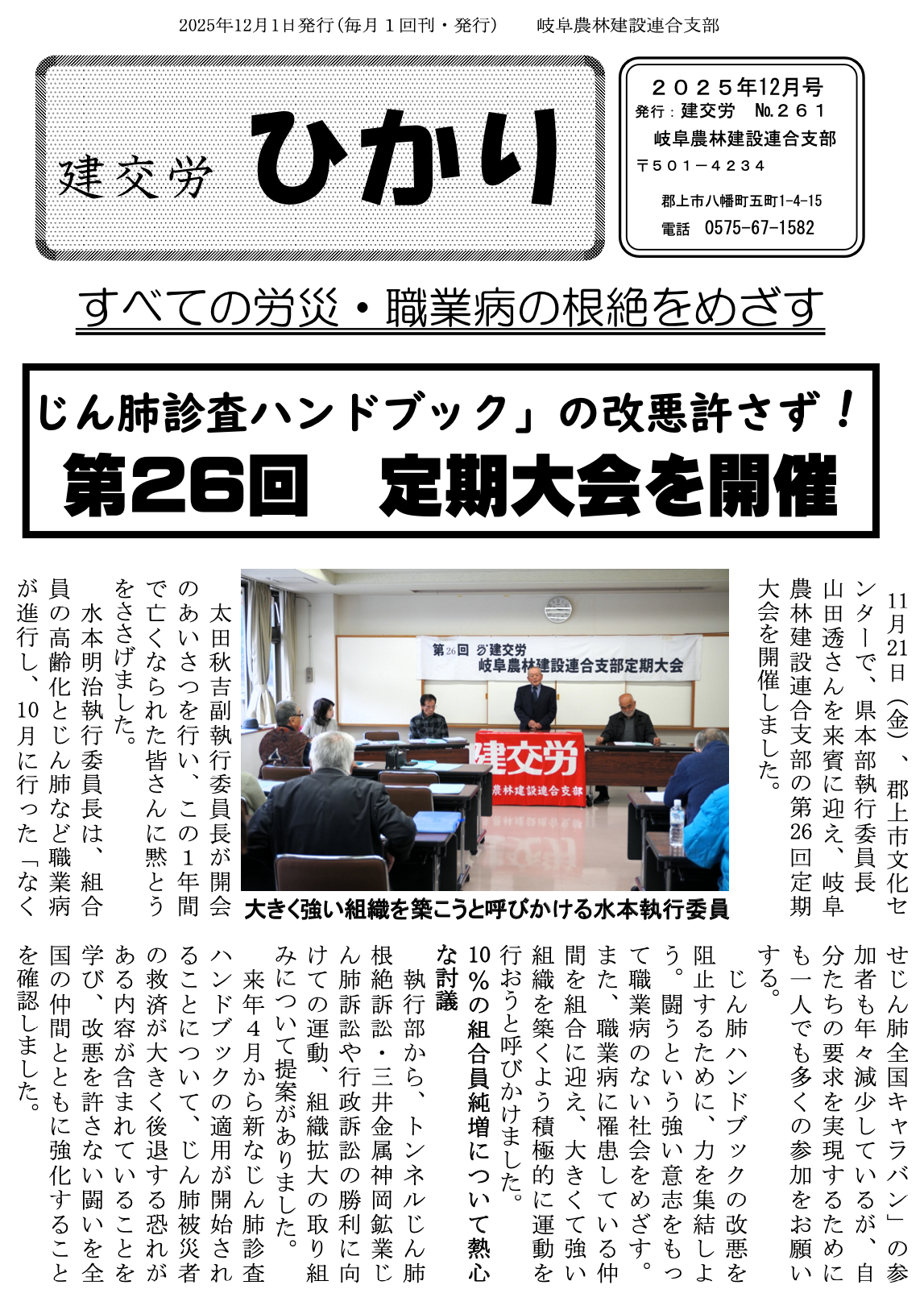 神岡鉱山のじん肺被害を早期に解決するために全力で闘います。