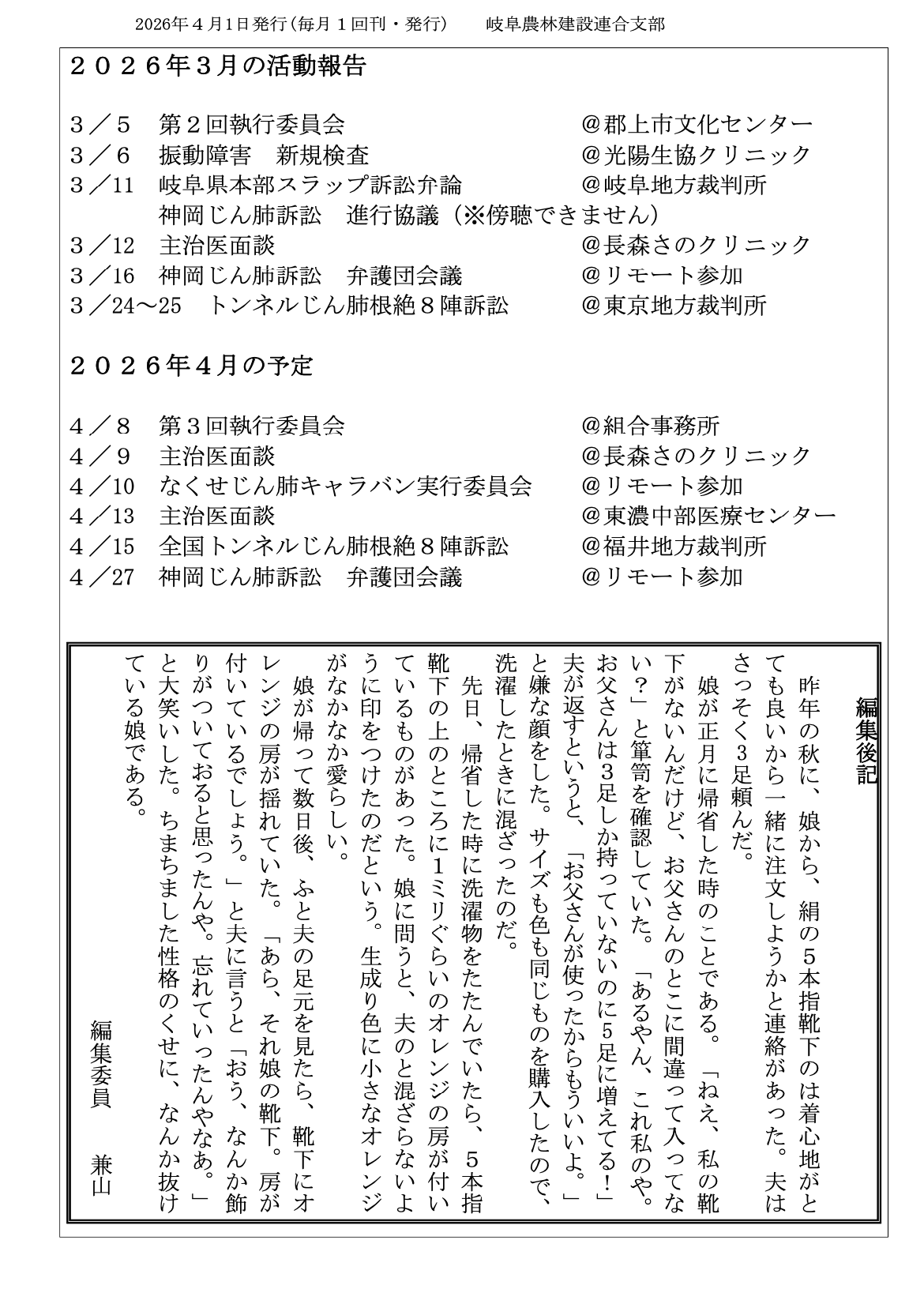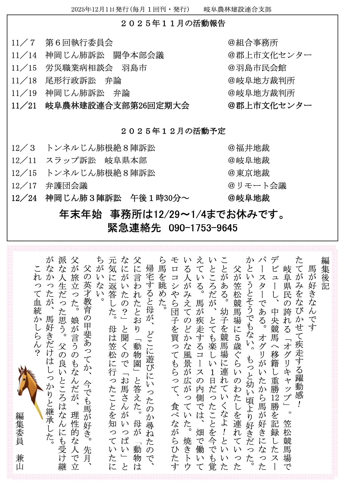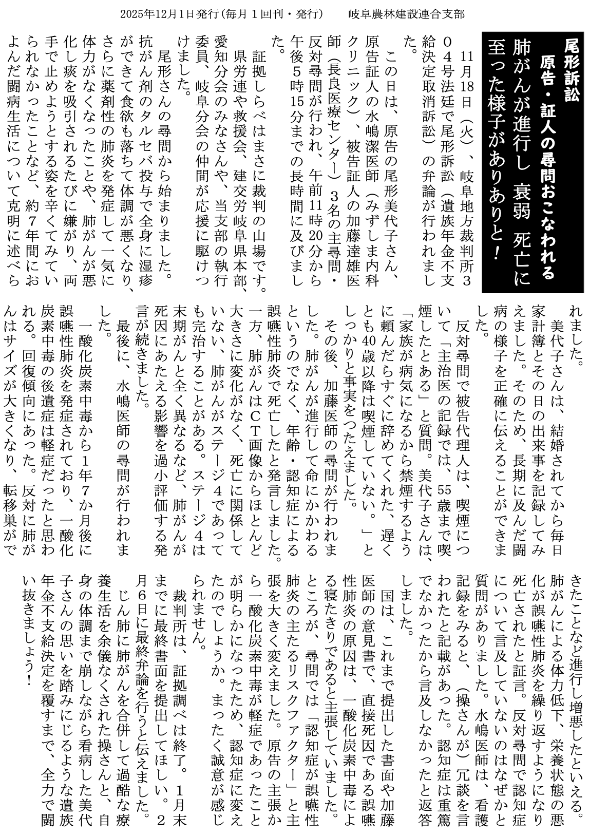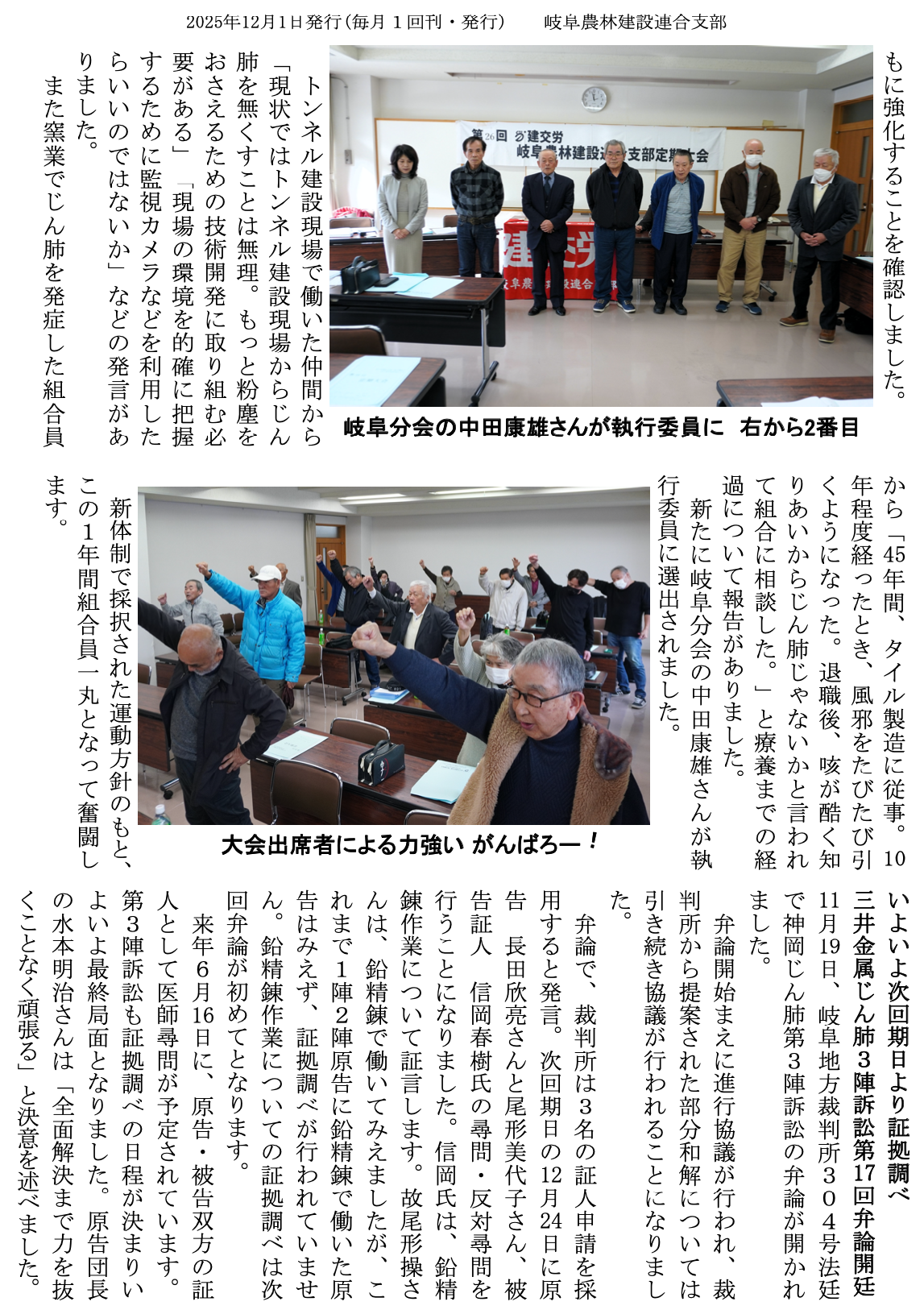 神岡鉱山のじん肺被害を早期に解決するために全力で闘います。